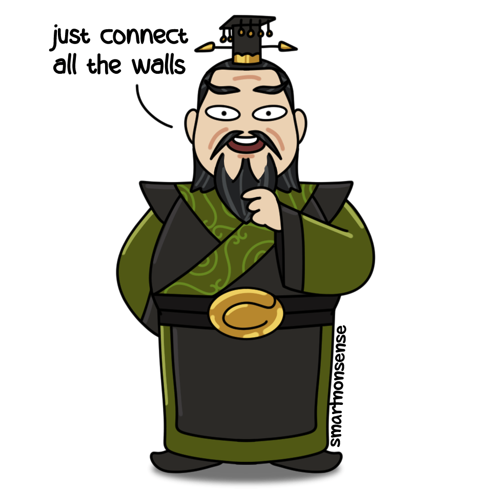 So China’s first emperor (Qin Shi Huang) unifies the country, and he’s all like: